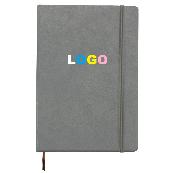 Caderneta de couro sintético, marcador de página em cetim e fita elástica para fechar. Contém aproximadamente 78 folhas amareladas sem pauta.